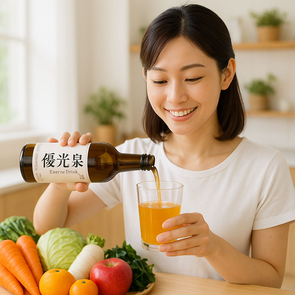優光泉は、酵素のパワーをしっかり引き出すために、長期自然発酵にこだわっています。発酵期間をしっかり設けることで、素材の酵素や成分が丁寧に分解され、体に摂り入れやすい形へと変化。活きた酵素がサポートしてくれるから、ファスティングはもちろん、普段の健康維持にも役立てやすいのが魅力です。